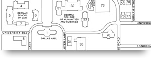 Two different maps of the SMU campus are available for download, one with the names of the buildings printed on the map, and the other with numbered buildings and a map key.