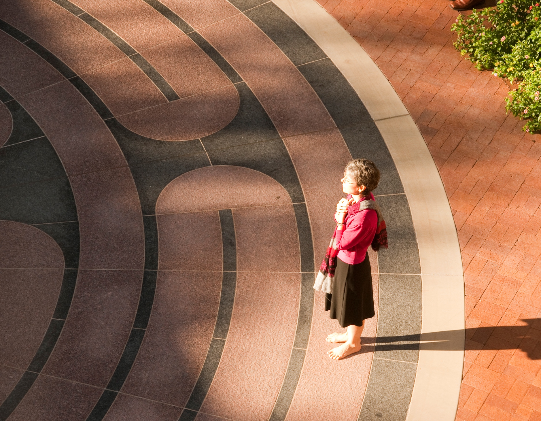 The Habito Labyrinth—a seven-circuit design, based on the eleven-circuit medieval labyrinth in France’s Cathédrale Notre-Dame de Chartres—is located in the Frost Marcus Labyrinth Courtyard Gardens, in the open and accessible space between Prothro and Selecman Halls at Perkins School of Theology. The path of the labyrinth is about one-third of a mile long and takes about 20 minutes to walk at a moderate pace.