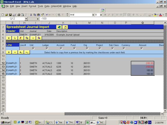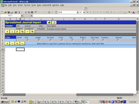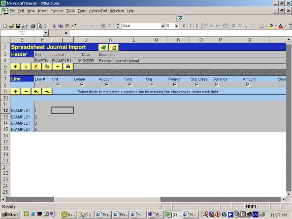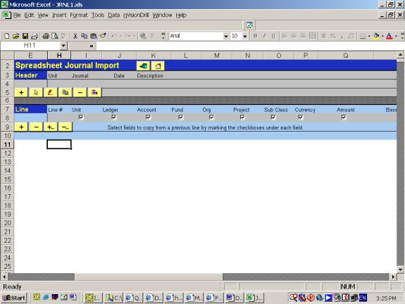 1. Launch JRNL1.xls file. This screen appears: