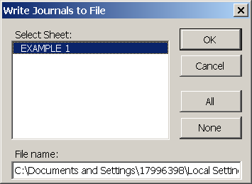 3. Enter a name for the new journal sheet. In this instance EXAMPLE 1 is the journal sheet name.