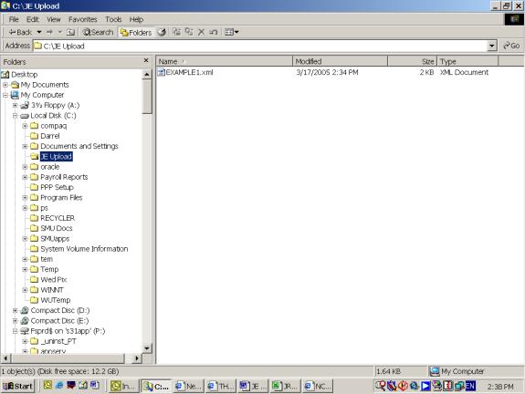 15. Verify your file was created in the C:\JE Upload folder.
