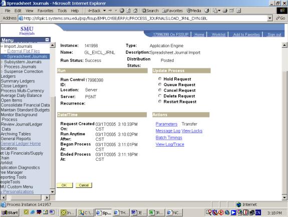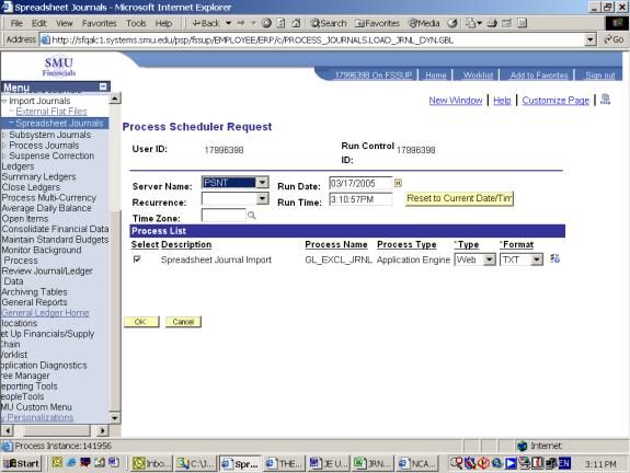 16. Logon to SMU Financials and navigate to General Ledger - Journals - Import Journal - Spreadsheet Journals.
