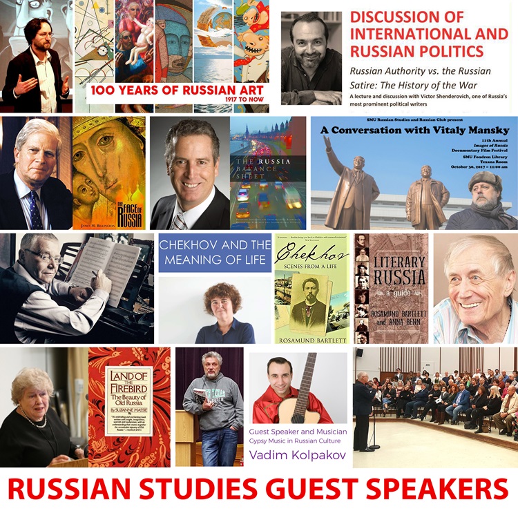 These lectures and discussions are organized with the support of the Russian Club, International Studies, the History department, and Student Senate. The program has a long tradition of inviting leading American, Russian, and European scholars and experts in different fields of Russian Studies to visit the SMU campus throughout the year.