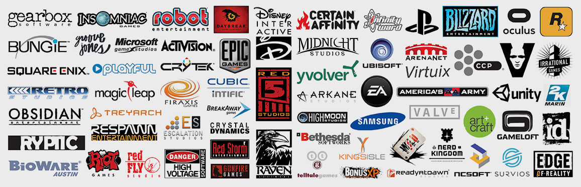 A few of our recent studio recruitment seminars have included Rockstar, Sony Santa Monica Studio, and NetEase. Some of our past keynotes and guest lecturers have included founders, directors, and lead developers at top studios such as: Bioware, Certain Affinity, Gearbox, id, Infinit