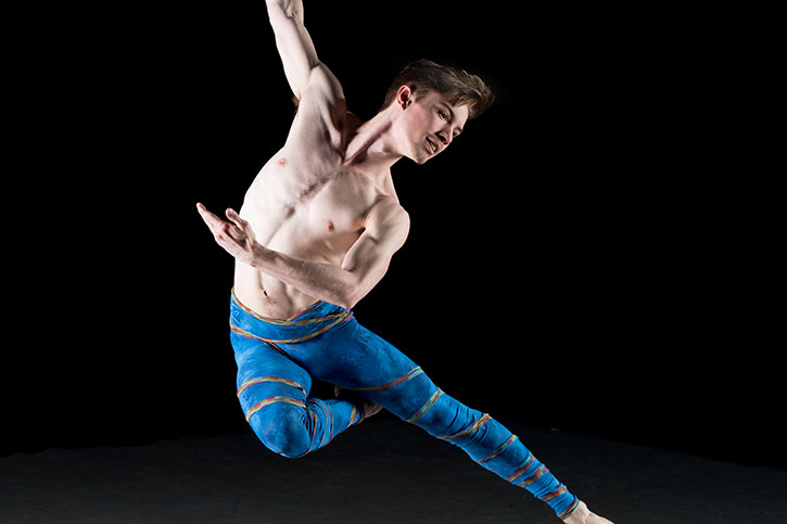 The program opens with the short classical ballet Valse-Fantaisie (or “fantasy waltz”), choreographed by George Balanchine for New York City Ballet in 1967. The whirlwind dance features a lead couple and four additional women and is set to fast, light music by Mikhail Glinka, Russia’s first national composer. The music and dreamy, romantic costumes create a magical atmosphere in which the dancers seem to take flight. Deceptively simple in its steps and structure, Valse-Fantaisie is difficult to perform yet exhilarating to watch.