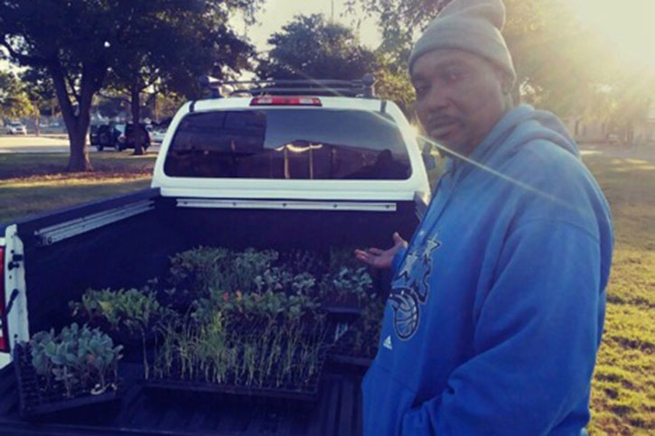 Charles Bryant, in training to become an urban farmer at the MLK Freedom Garden Seedling Farm, gets ready to deliver an entire season of plants to a local garden.