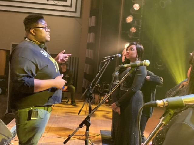 Chinn coaches the lead actresses during filming "The Clark Sisters: The First Ladies of Gospel."