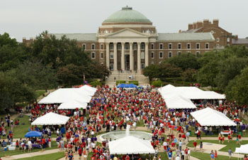 SMU President R. Gerald Turner said the idea for The Boulevard came from the University of Mississippi, where he served as chancellor until 1995. Ole Miss fans prepare for football games on “The Grove,” which is a 10-acre area of open space and trees in the middle of campus, much like The Boulevard.