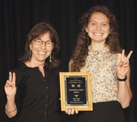 Jennifer Lauren Smith (r.) accepts award from Prof. Bonnie Jacobs |