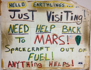 He turned the signs into an art project. At galleries, he stuck them to the floor and strung them from the ceiling. He organized a flash mob holding the signs. In 2012, he delivered a TEDx talk at SMU about the project.