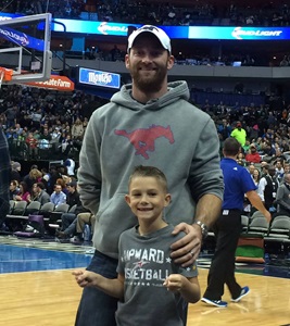 Jason Waller at Mavericks game with his son, Brinnen. |