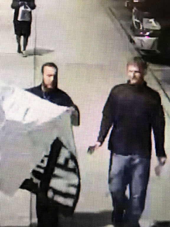 Surveillance video at Park Cities Plaza shows five individuals exiting a dark-colored full-sized pickup truck about 11:20 p.m. Saturday, Dec. 2. Two individuals later are seen carrying a banner about 12:20 a.m. Sunday, Dec. 3.