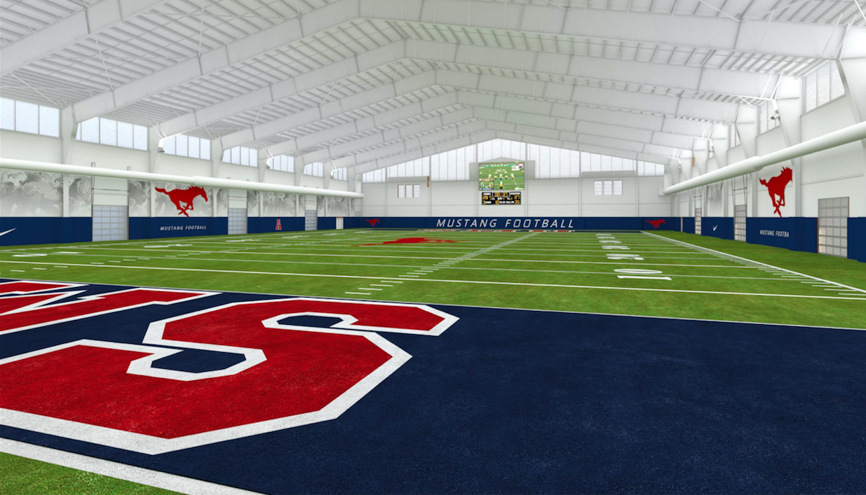 Construction of new SMU Indoor Performance Center celebrated at Mustangs' annual spring game