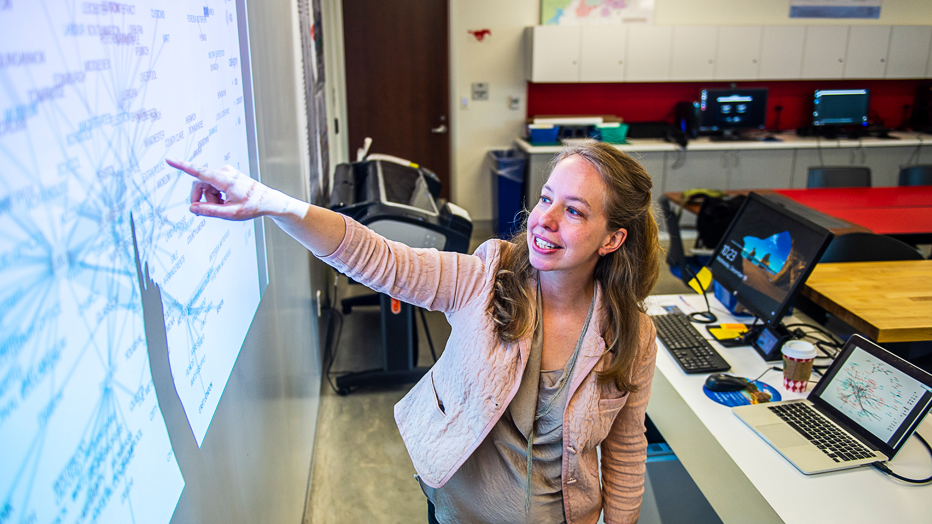 Her undergraduate British history class, “Britain and the World,” is designed to attract history, business and engineering students. In the class she pairs history and tech students to work on social, political and economic research projects. Together they use technology and context to examine British history in a new way.