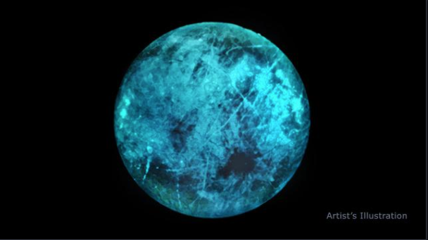 This artist's illustration of Jupiter's moon Europa shows how the icy surface may glow on its nightside, the side facing away from the Sun. Image Credit: NASA/JPL-Caltech