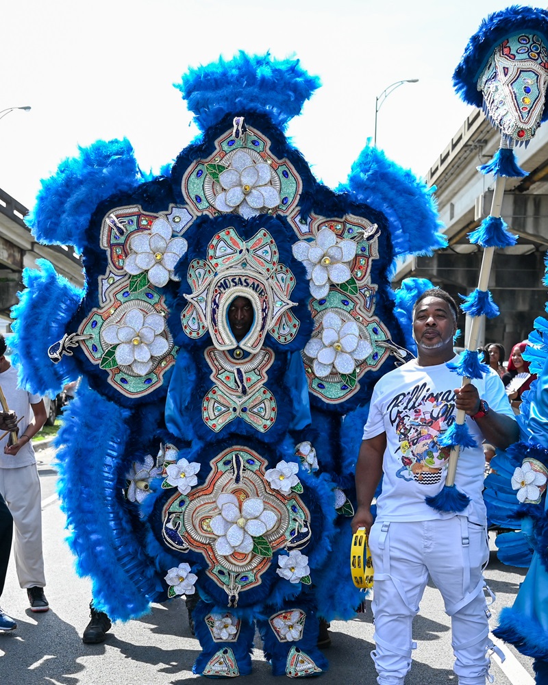 Chief Shaka is a master of Black Masking suit design, an art form specific to New Orleans, which originated as part of the Indigenous and African culture in the city. -- Monifa Thomas-Nguyen