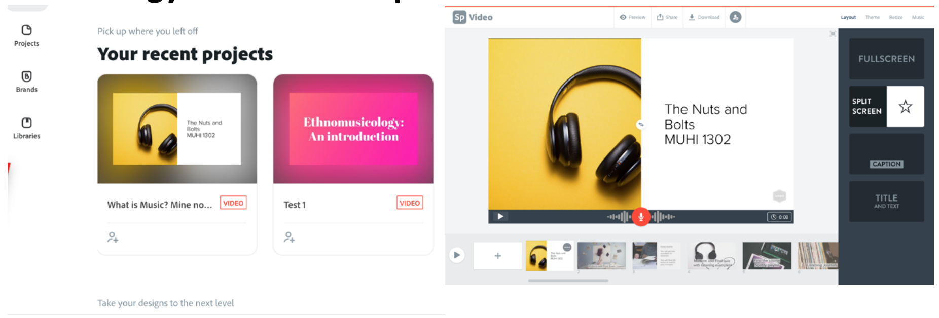 Demonstration: To see an example of a video created with Adobe Spark, see the following link for my “Nuts and Bolts” syllabus video.