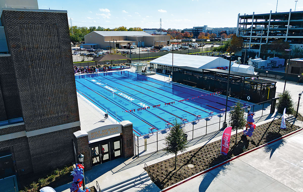 SMU celebrates the dedication of the Holt Hickman Outdoor Pool at the Robson & Lindley Aquatics Center, named for the late Holt Hickman ’54, and made possible by the Robson, Lindley and Hickman families.