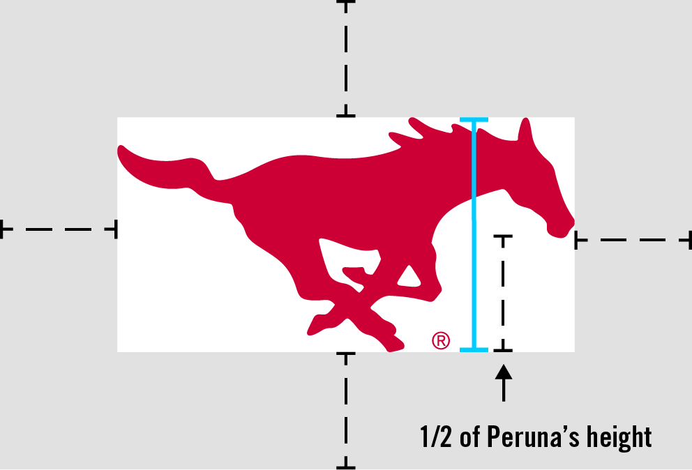 Except for official sports team logos created by SMU Marketing and Communications or SMU Athletics, there should be at least one-half the height of the “M” as clear space around the Spirit logo.