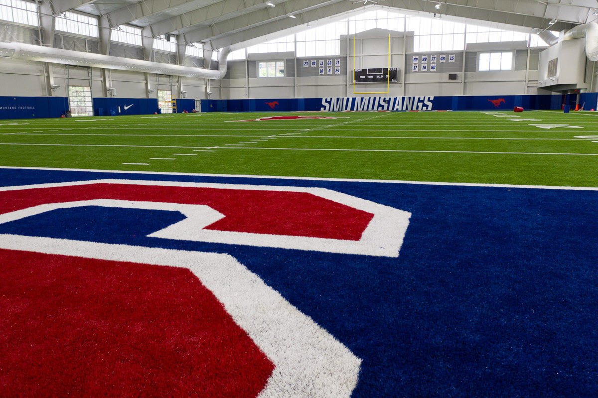The Armstrong Fieldhouse features two scoreboards, a videoboard, glass roll-up doors and translucent panels above the practice field to let in natural light. Housing the Weber Observation Deck and Loyd Field, the facility incorporates tributes to SMU’s most famous football alumni.