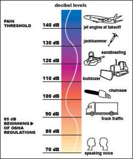 - Exposure to noise levels over 85 dB can cause hearing loss