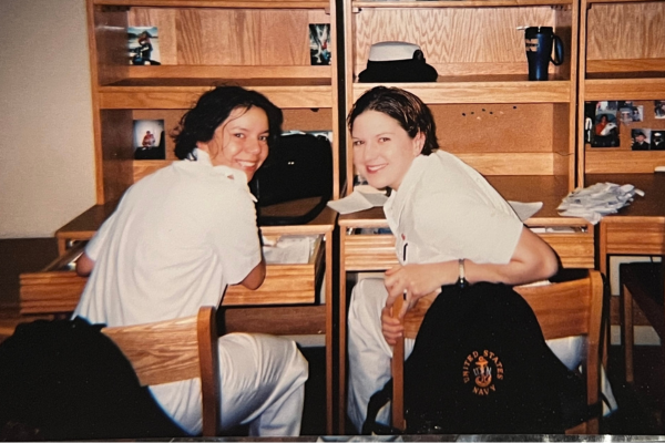 Ried (R) with her roommate inside the barracks at Yeoman “A” School base at Meridian, Mississippi after bootcamp in 2002.