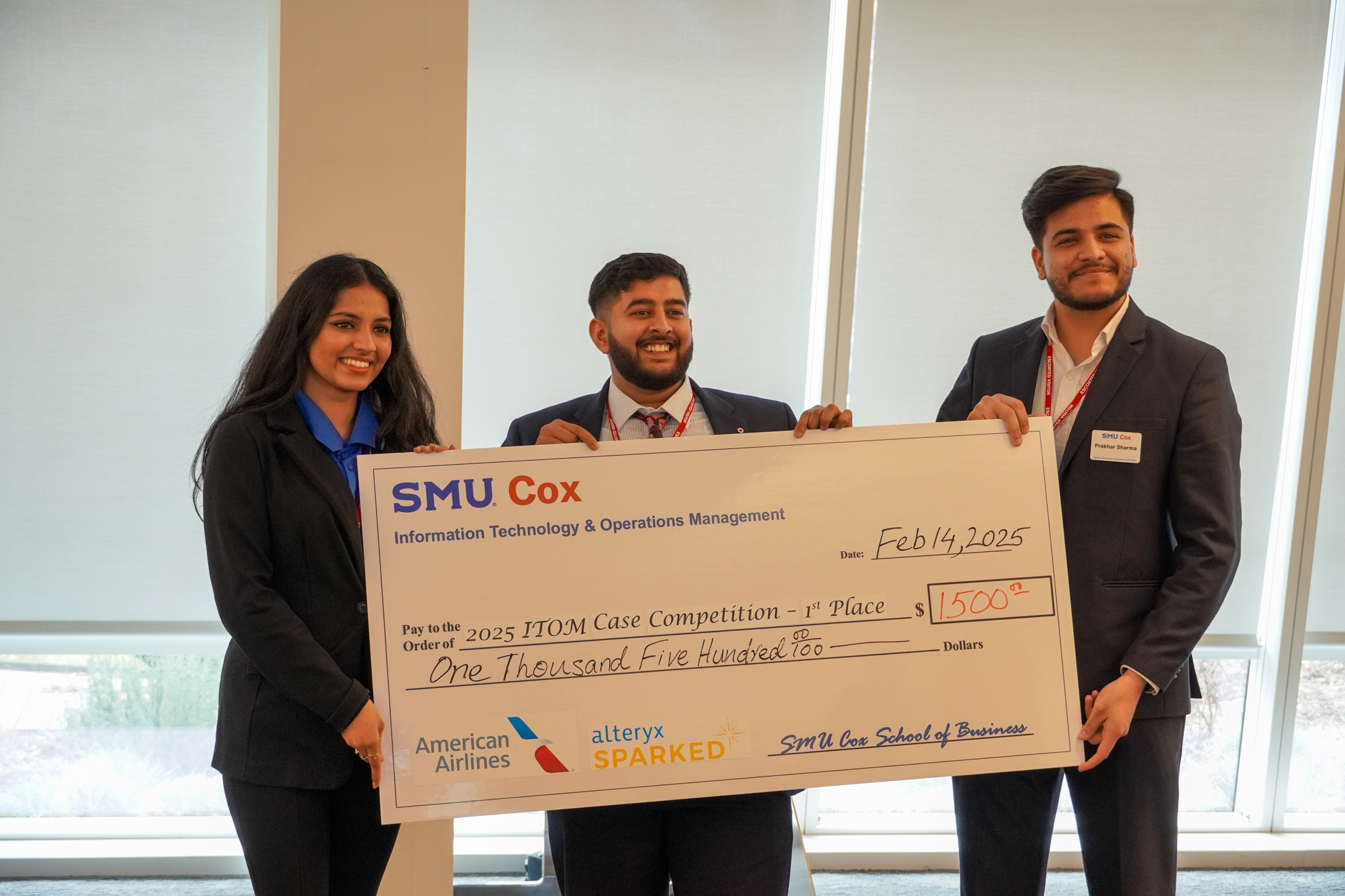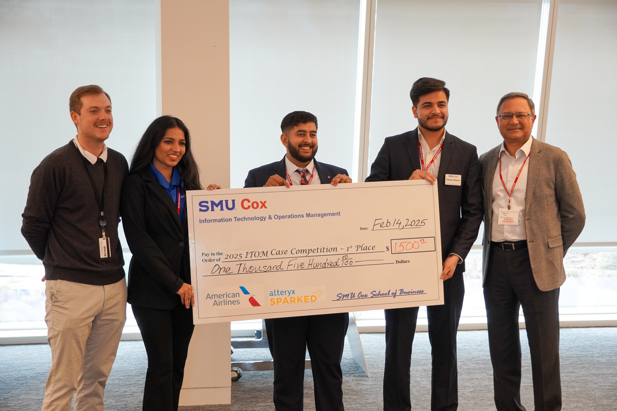 Each year, the ITOM Case Competition provides SMU Cox students with the opportunity to challenge themselves and apply their knowledge from various business disciplines to solve complex, real-world problems faced by companies. This year was no different. The 2025 ITOM Case Competition, held from February 7th to 14th, was sponsored by American Airlines and Alteryx SparkED. The case focused on a supply chain optimization challenge---specifically, improving American Airlines' repair order process. The case had broad implications, including streamlining inventory management, refining accounting procedures, assessing financial impacts and optimizing the supply chain. Participants were provided with four years of real-world data and had just a weekend to analyze it, identify patterns and key drivers, and develop strategic recommendations.