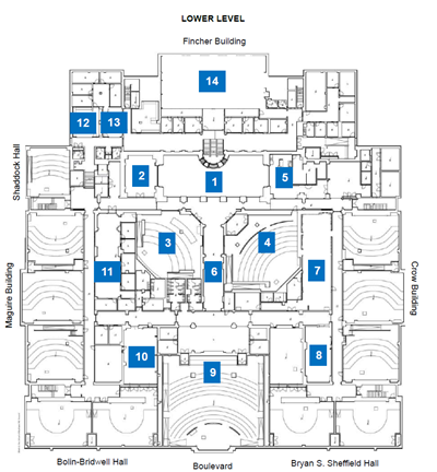 A prominently located 1,700-square-foot lab offers a broad range of market research opportunities in controlled environments with 35 technology-driven workstations, including various forms of monitoring and control of thermal, visual and auditory cues for individual study.