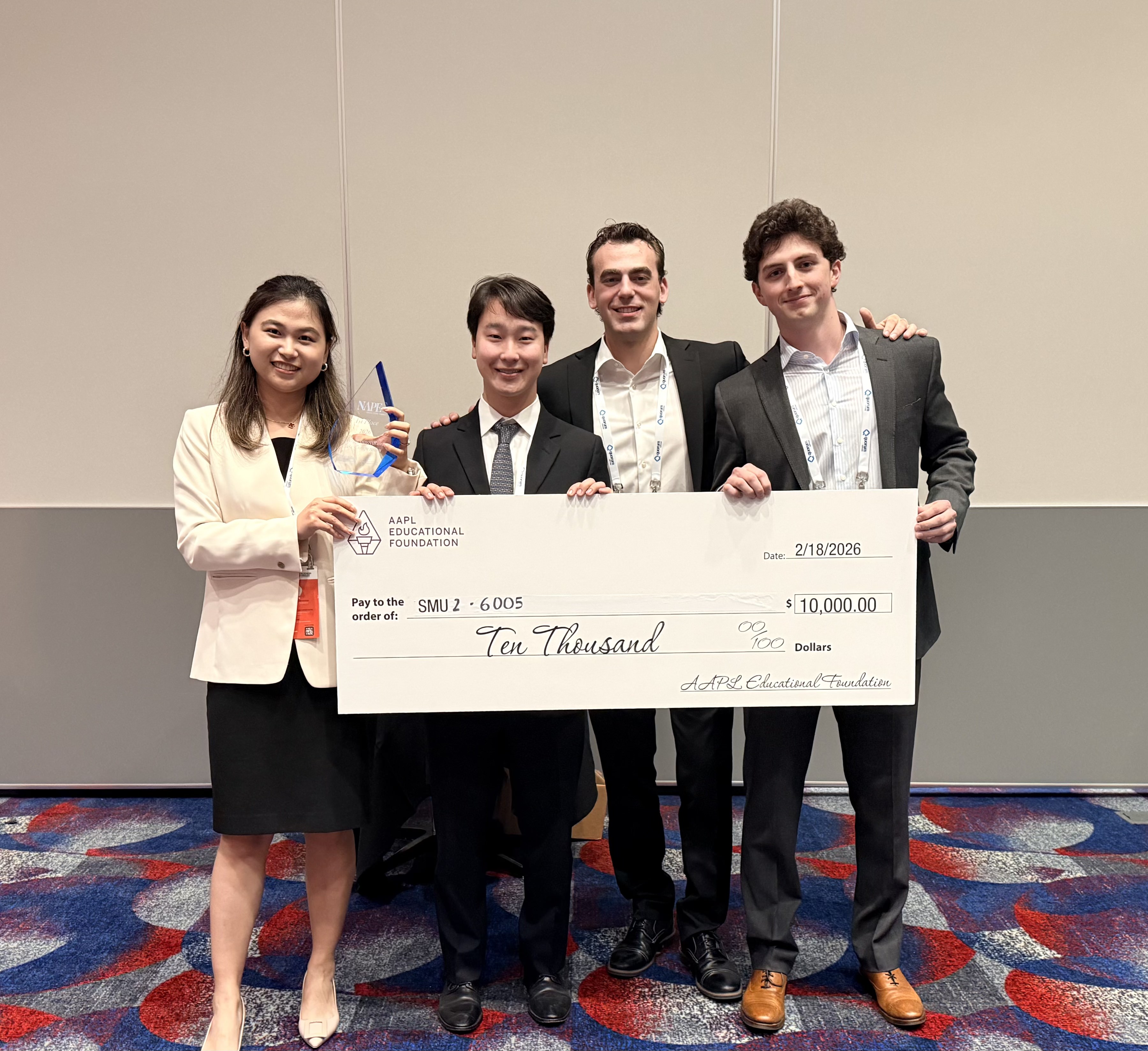 Each team’s prize proceeds are divided among the team members. SMU Cox students competed against students from the business schools of 14 universities, including Rice, Tulane, the University of Texas and the University of Oklahoma.