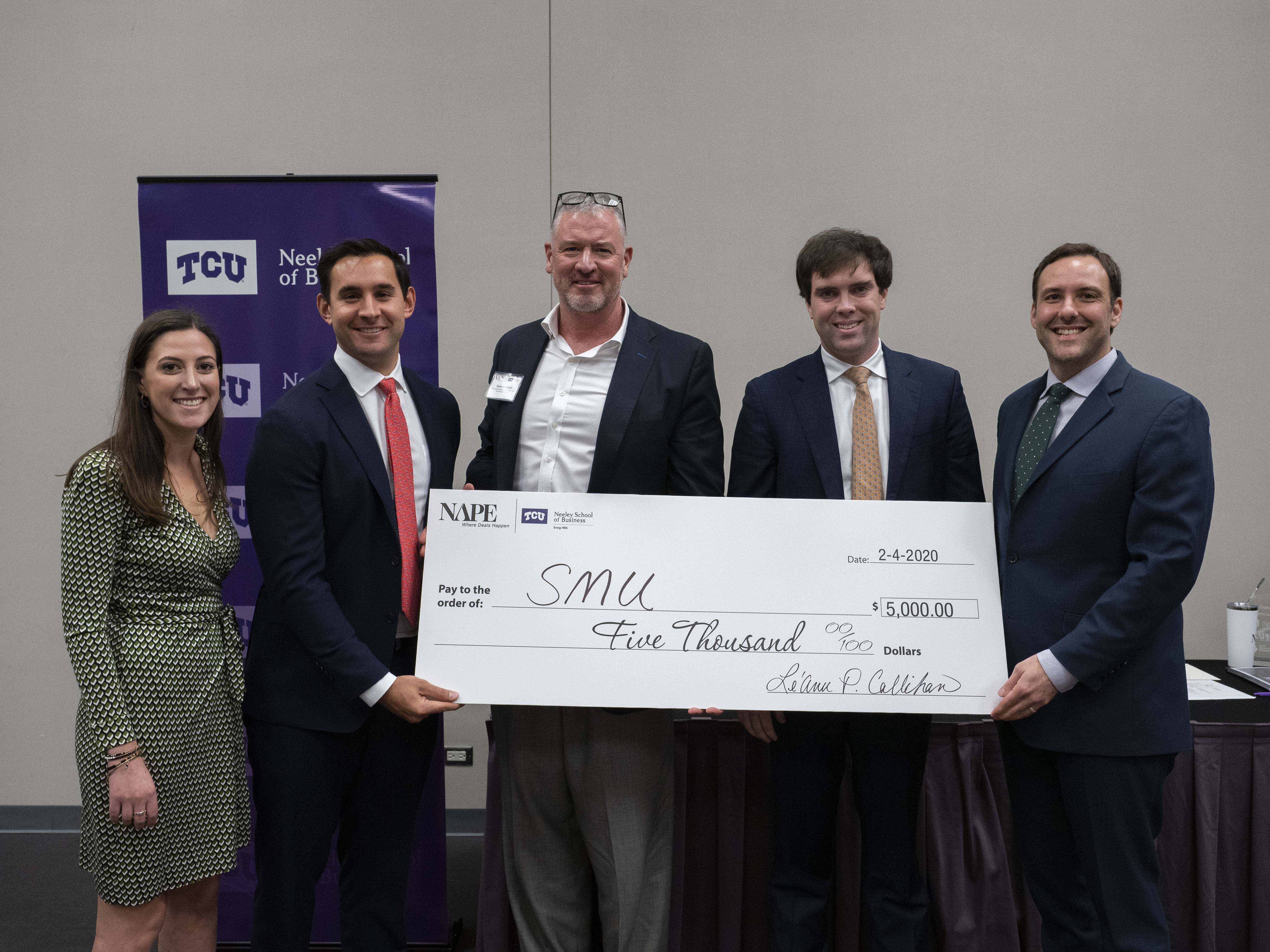 Cox News Last week four SMU Cox MBAs competed and placed 3rd in the inaugural TCU Energy Case Competition at the NAPE Conference in Houston, Texas. Mark Avioli, Travis Little, Emily Mallon and Morgan Mitchell, all 2nd year MBAs, analyzed the implications of the wide performance of U.S. E&P equities in 2019 to create innovative real-world solutions.