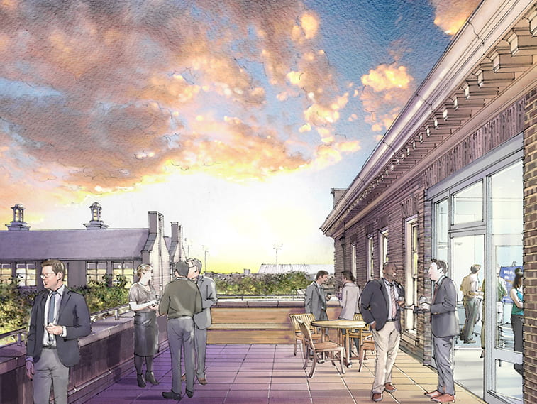 A rooftop event space designed to take advantage of the North Texas seasons for outdoor events, receptions and academic gatherings. The Terrace will overlook the Turner Centennial Quadrangle and Crain Family Centennial Promenade and offer striking views of SMU’s campus.