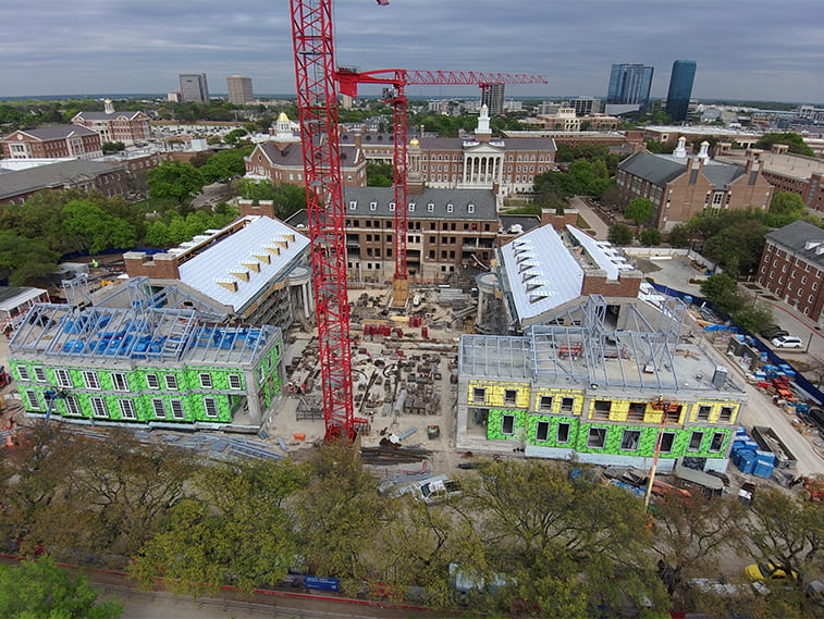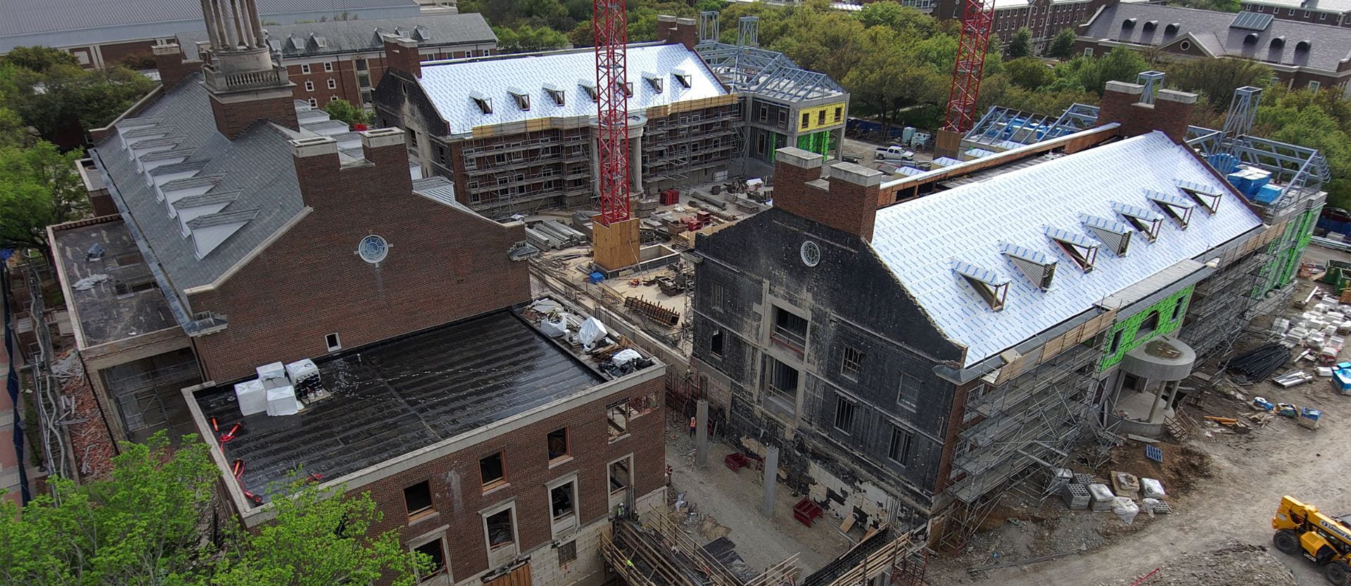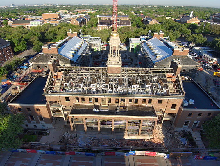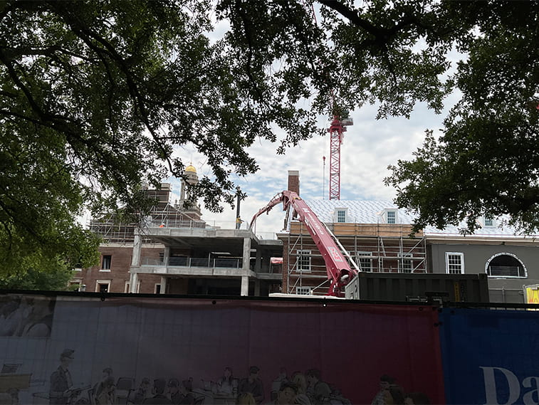 SMU broke ground on the Cox School’s $140 million Renovation and Expansion Project in May 2022. Fourteen months later, construction on the David B. Miller Business Quadrangle—the principal name for the Cox School’s renovated and expanded facilities—remains on track for completion in the summer of 2024, according to SMU’s Office of Facilities Planning and Management.