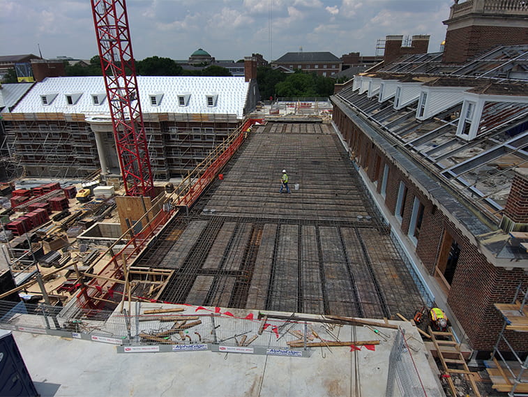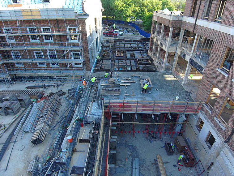 The following photos highlight construction progress on the Miller Business Quadrangle since January.