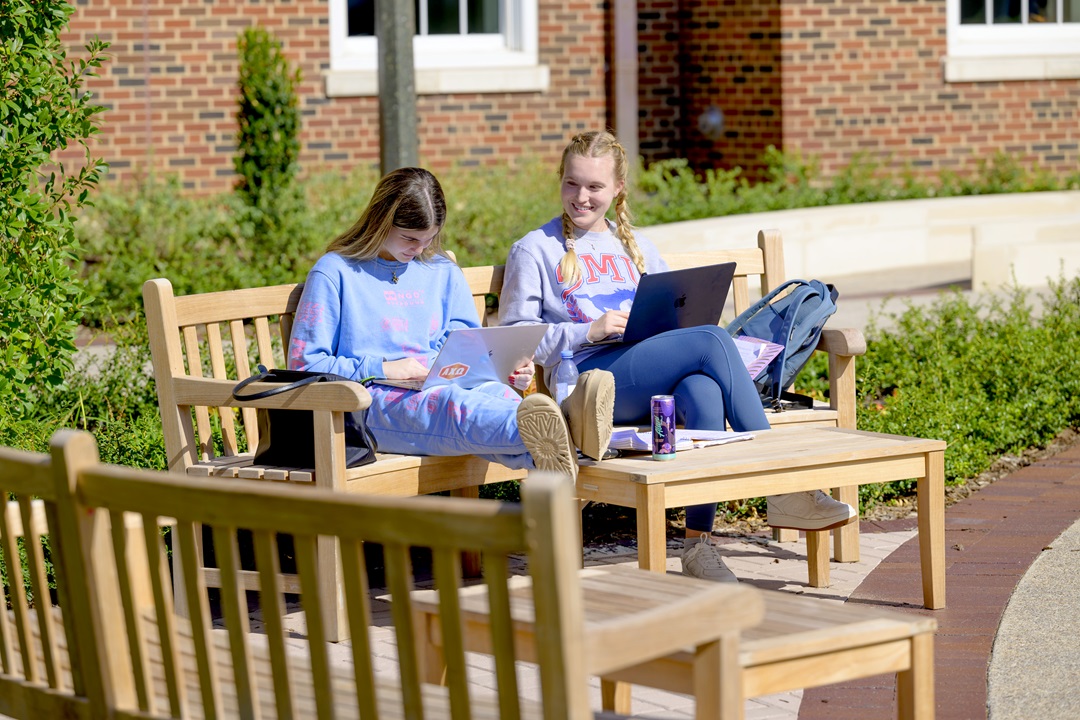 Students embrace every available space—and there are many—to study and collaborate in the Miller Business Quadrangle.