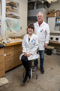 Like Snyder, working on the exhibit has shaped more than just Perez’s time on campus; she was able to discover a love of working directly with fossils, and was offered a position as an Assistant Preparator with the Perot Museum of Nature and Science to work on Alaskan dinosaurs and Cretaceous marine reptiles in their new labs after graduating this spring.