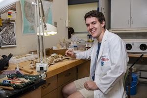 Much of the process for Snyder involved slow and meticulous work to safely prepare each fossil, but the end result was well worth the process. “I loved working on the jawbone of Prognathadon Kianda during the spring of my sophomore year. It took me most of the semester to free the jaw from the matrix, but it was very satisfying. The teeth are especially neat to work with!”