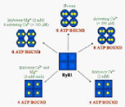 We have recently discovered a potentially novel pathway for the regulation of calcium channels like the ryanodine sensitive Ca-channel, ryanodine receptor 1 (RyR1), using Electron Spin Resonance spectroscopy (ESR) and spin-labeled ATP. Employing this technique we for the first time unequivocally showed that the homo-tetrameric channel contains a total of eight ATP-binding sites and that the accessibility and affinity of these binding sites is directly regulated by divalent cations like Mg2+ and Ca2+.