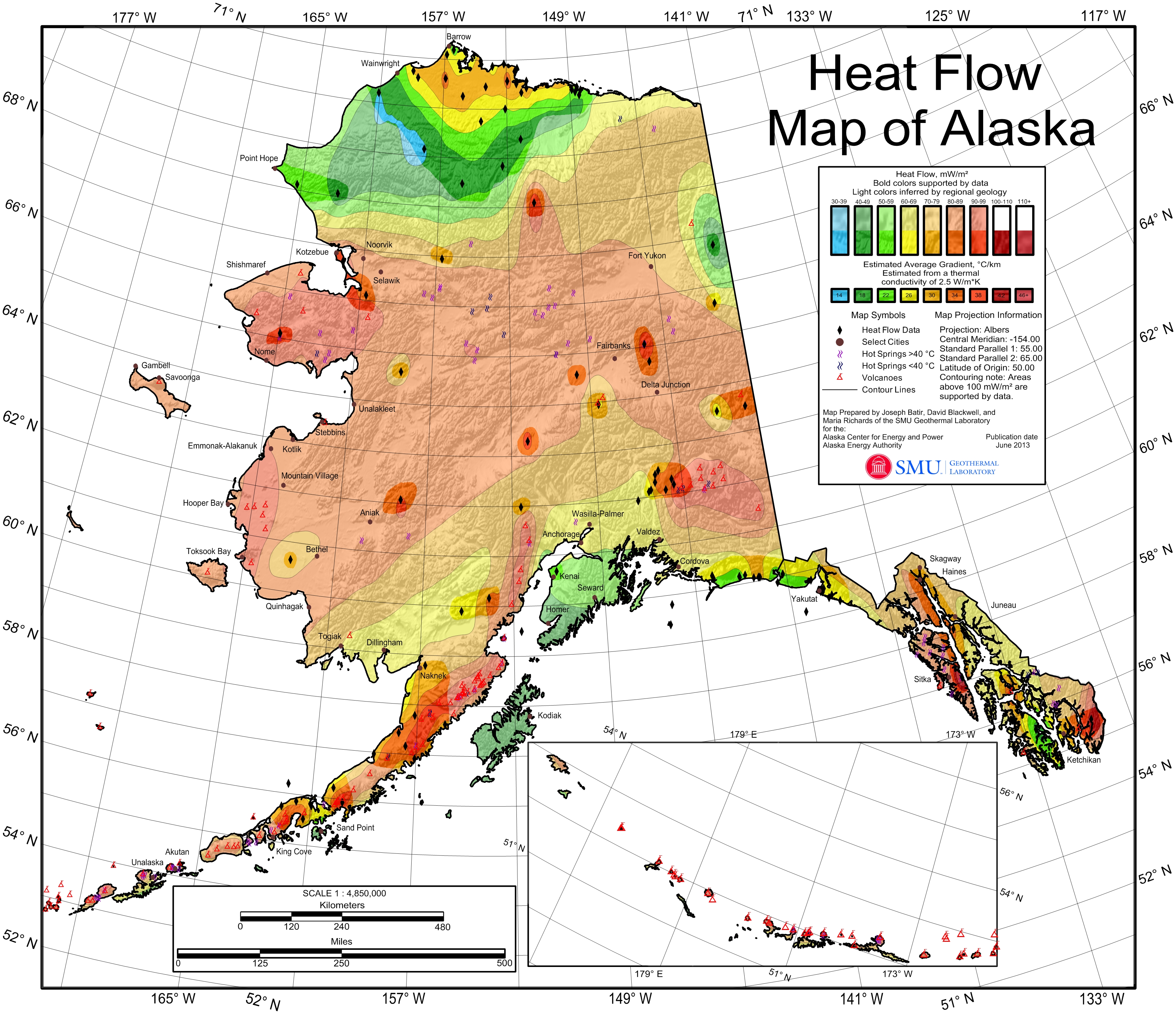 Citation: Batir, J. F., Blackwell, D. D., & Richards, M. C. (2013). Updated surface heat flow map of Alaska. GRC Transactions, 37 (GRC1030682).