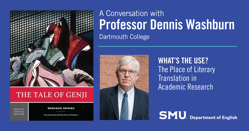 The SMU Department of English is delighted to announce Prof. Dennis Washburn’s upcoming talk on translation studies on November 25th at 4:00 p.m. in Fondren's Texana Room. Dennis Washburn is a Professor of Comparative Literature, Asian Societies Cultures and Languages, and Film Studies at Dartmouth College. He completed the most recent translation of The Tale of Genji into English in 2015. His work joins the three other principle translations of this text in English. Reception to follow.