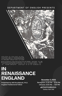 Abstract: Early Modern England is often perceived as a culture obsessed with correcting and eliminating error. But this talk explores how many Renaissance poets, scientists, and philosophers understood error as a process of wandering exploration. These authors embraced error – both its potential and real effects – as necessary for learning, creativity, and discovery.