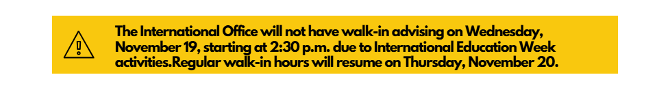 Please reach out to the International Student and Scholar Services Office if you have questions or need assistance.