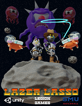 Swing into an epic space adventure and play as the friendly robotic space cowboy, Lazer Lasso. Help Lazer as he flies from asteroid-to-asteroid, ridding the galaxy of the heinous alien varmints as he searches for his lost space cows.