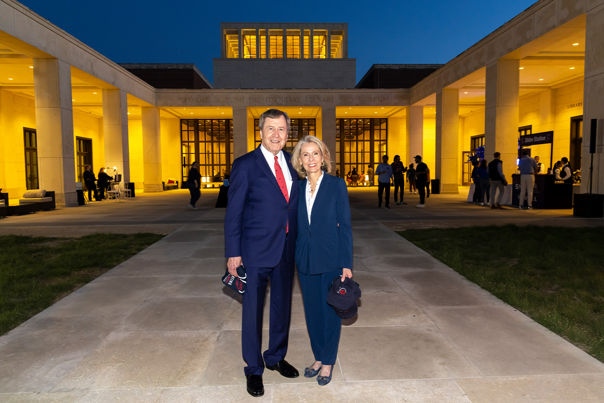 Commemorating its decade of impact on the Hilltop, The George W. Bush Presidential Center hosted a special student event on April 13. SMU students were joined by SMU President R. Gerald Turner and his wife, Gail, for a night of food, fun, games and a special after-hours tour of the Bush Center.
