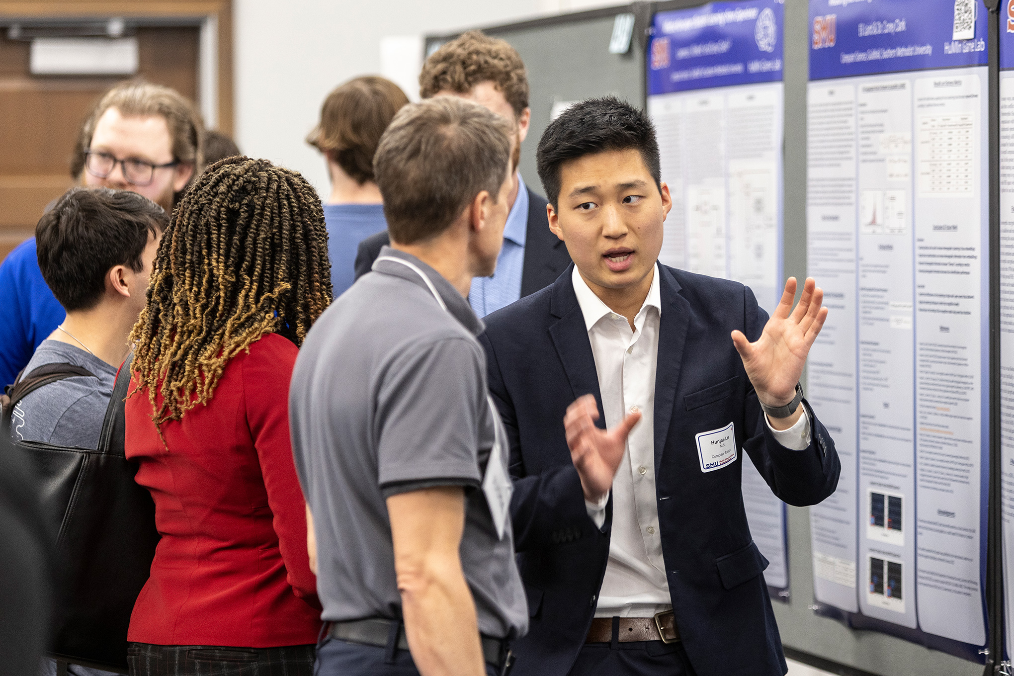 SMU Research and Innovation Week showcases outstanding research being done by graduate and undergraduate students. This year, more than 150 students participated in project presentations on topics ranging from anthropology to engineering. The annual event helps foster communication between students and postdocs in different disciplines and offers them opportunities to build skills by presenting their work in a professional setting.