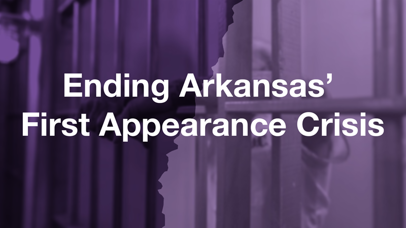 Like 25 other states, Arkansas promises that an arrested person will be represented at first appearance. Rule 8.2 of the Arkansas Rules of Criminal Procedure requires that arrested people who are indigent receive the assistance of counsel at their first appearance. But Arkansas is failing. Despite Rule 8.2, Arkansans are commonly forced to stand alone before a judge at first appearance. Often, they do not see a lawyer until arraignment, which can occur months after their first appearance. During these months, arrested people—who are presumed innocent—can sit in jail without knowing when they will next be brought to court or how to effectively advocate for their release.