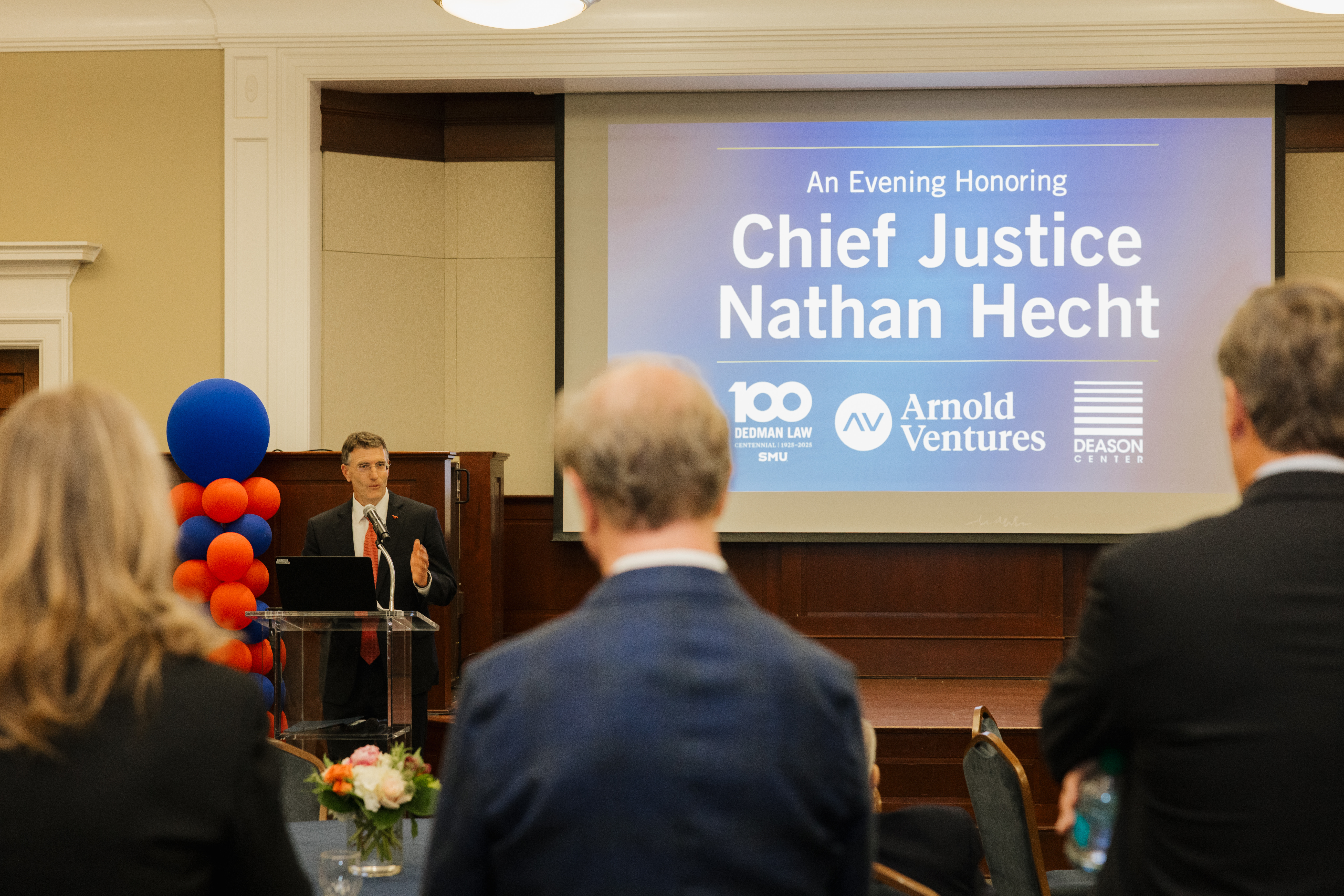 In addition to remarks from SMU Dedman Law faculty, Chief Justice Hecht reflected on his judicial career and shared his ongoing efforts to advocate for equitable access to justice and a fair legal system for all Texans.
