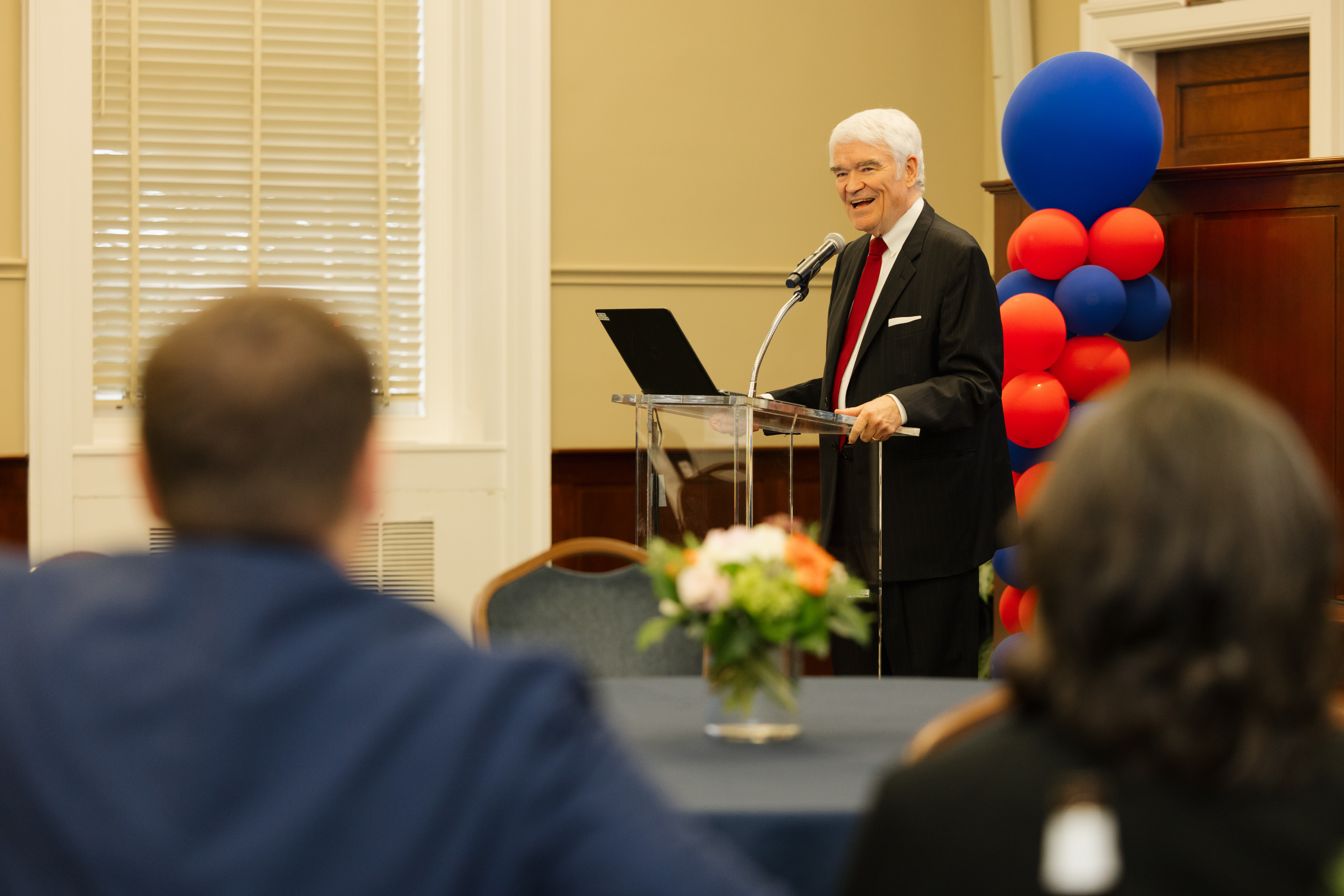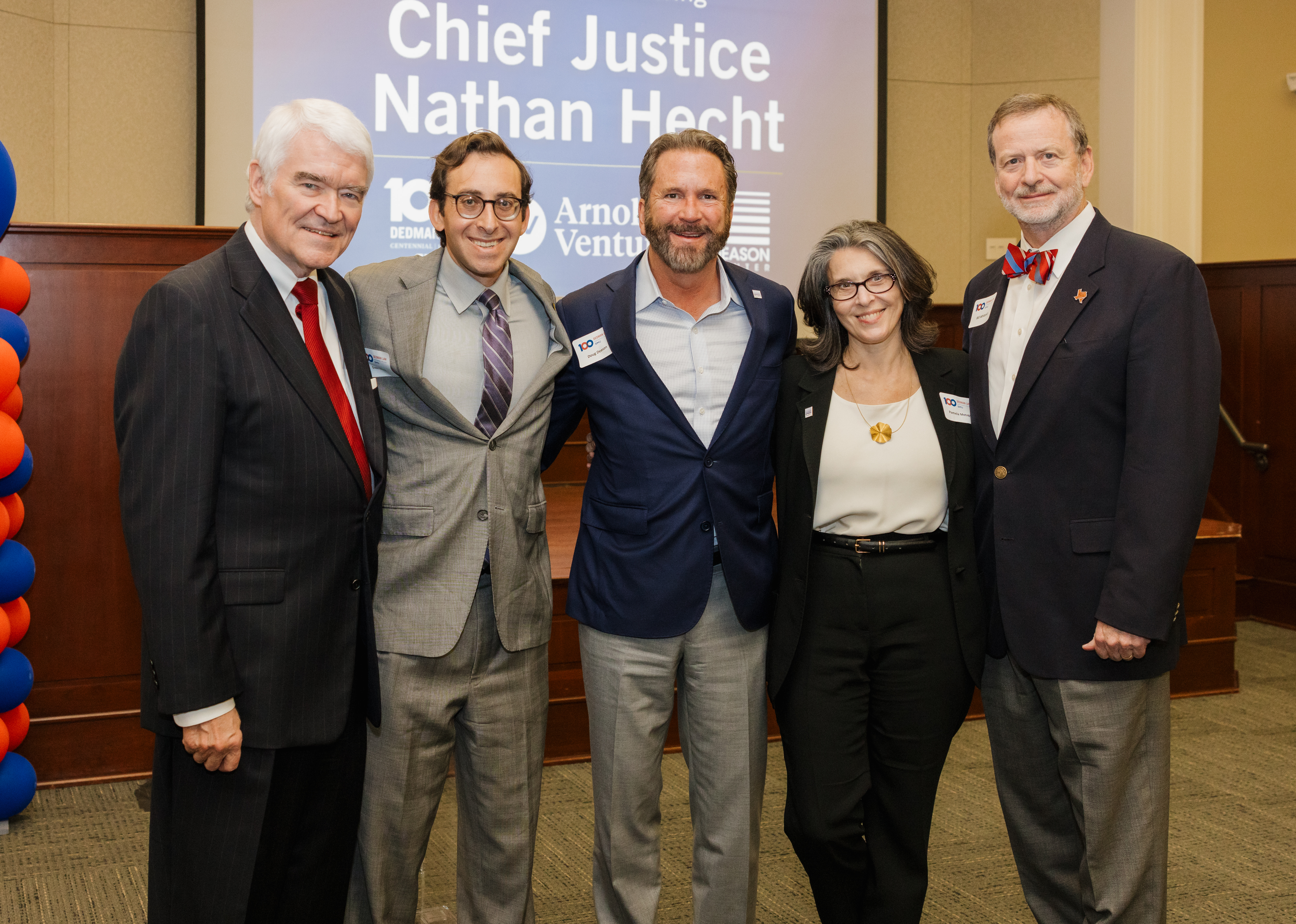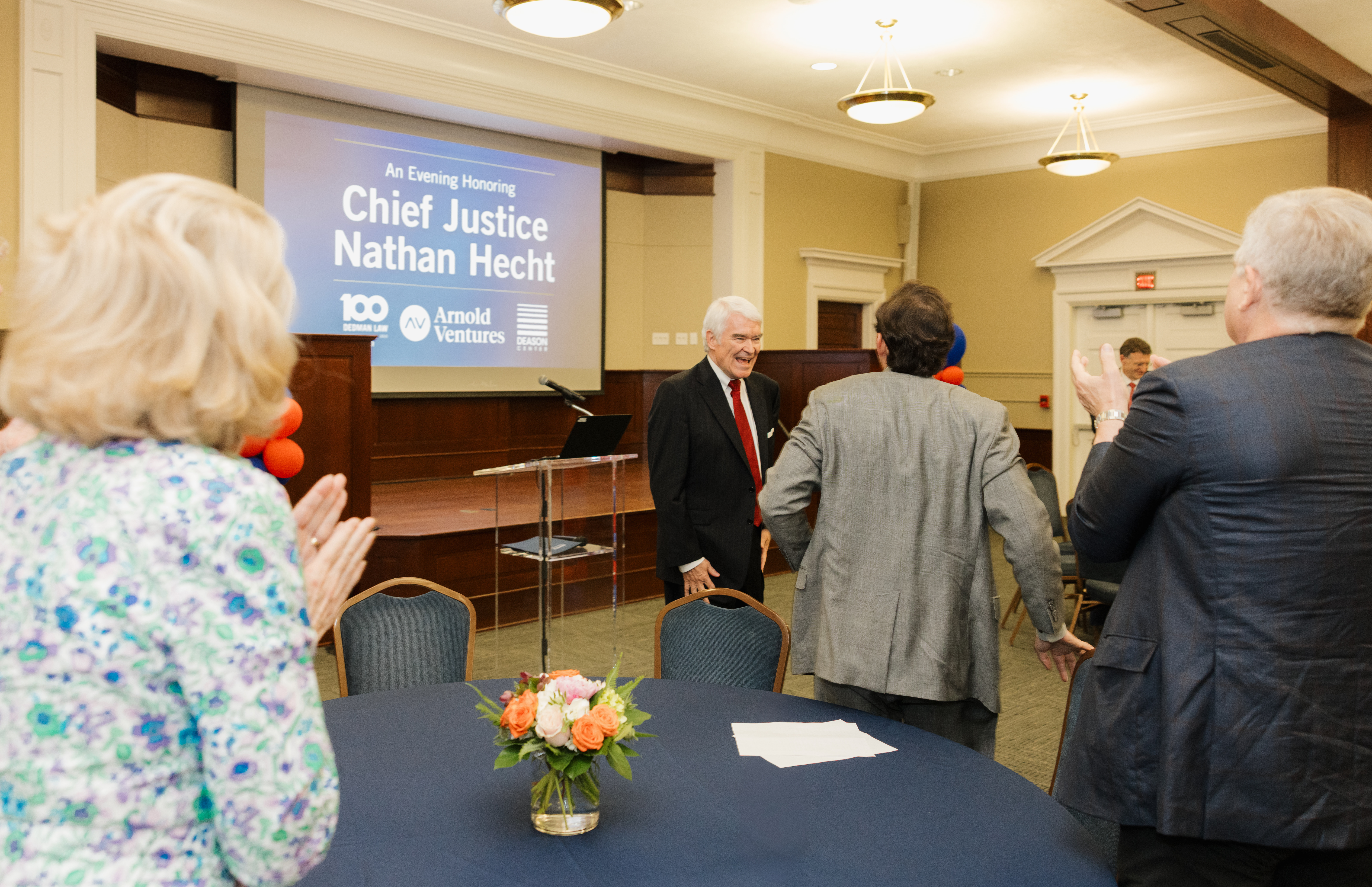 The Deason Criminal Justice Reform Center at SMU Dedman School of Law, in partnership with Arnold Ventures, celebrated the career and retirement of Chief Justice Nathan Hecht, Texas’ longest tenured Supreme Court justice, with a reception on Thursday, May 22, 2025. First elected to the court in 1988, Chief Justice Nathan Hecht officially retired on December 31, 2024. The event honored his impact on Texas courts and his contributions to criminal justice reform.