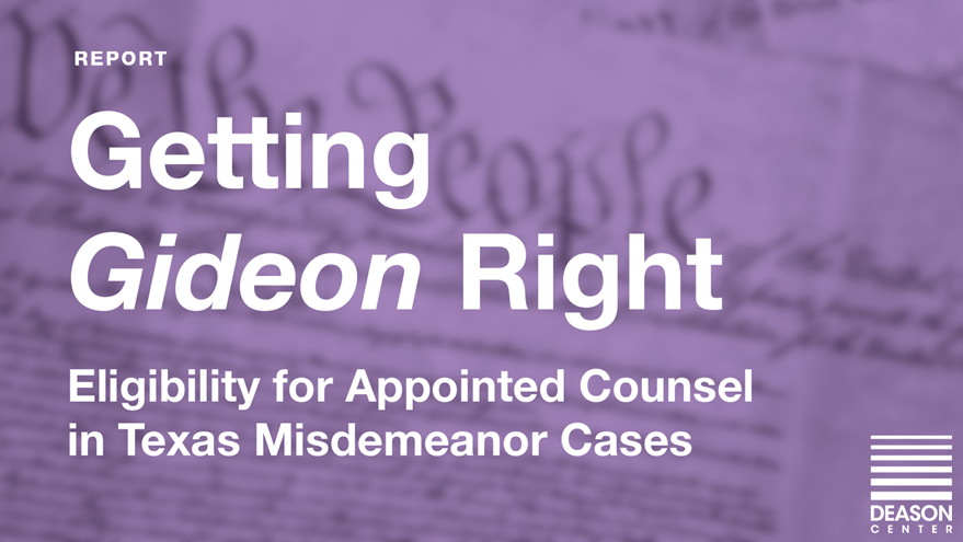 Getting Gideon Right investigates the financial standards that determine an accused person's eligibility for appointed counsel in Texas county courts. The report reveals a patchwork of county court policies that are both complex and severe.