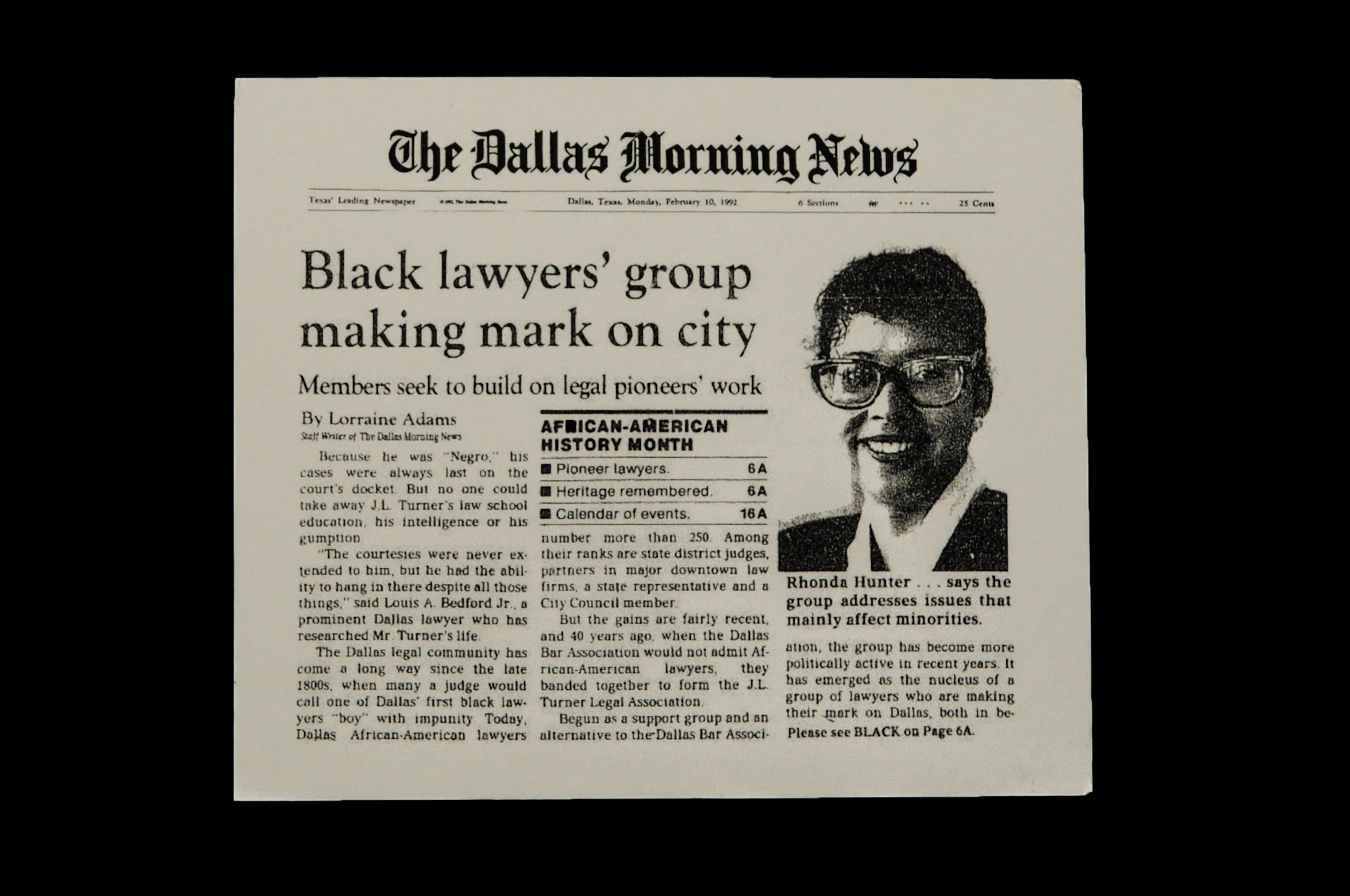 Lorraine Adams, Black Lawyers' Group Making Mark on City, Dallas Morning News, Feb. 10, 1992, at 1A.