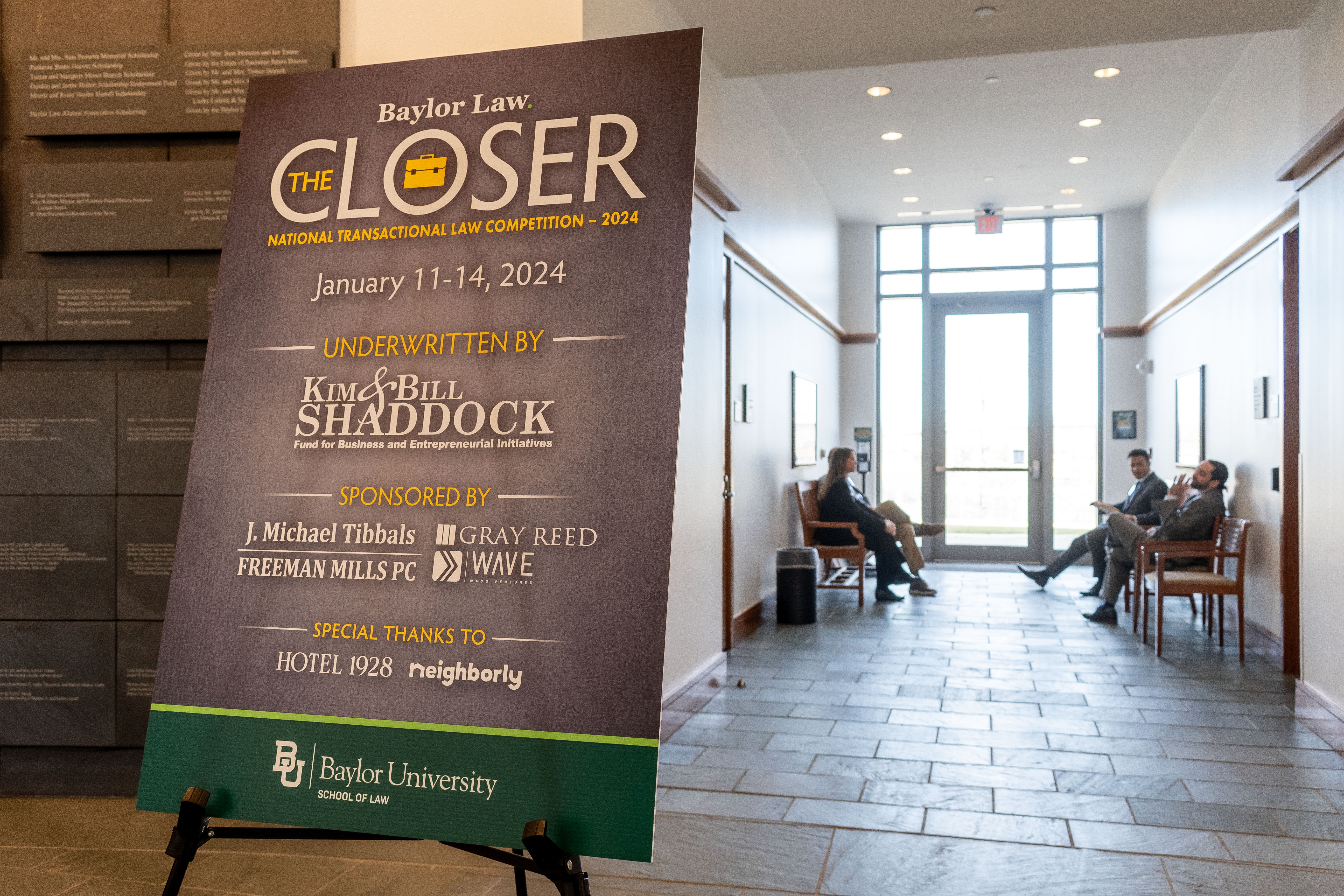 Ryan Shellooe (3L) competed in the The Closer National Transactional Law Competition at Baylor University School of Law in Waco, TX on January 11-14, 2024. He was coached by Professor Carla L. Reyes.